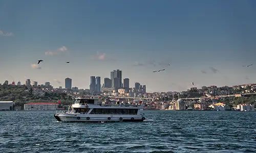 ركوب القارب: بعد ذلك، اصعد إلى قارب مريح سيأخذك في رحلة بطيئة على طول مضيق البوسفور.