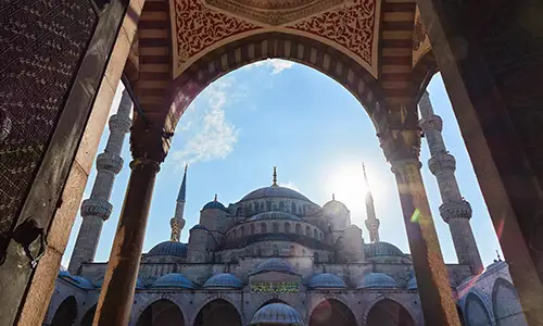 Синята джамия (джамия Султан Ахмед): Полюбувайте се на елегантната Синя джамия, украсена с изящни сини плочки Изник.
