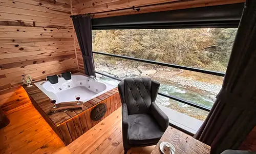 Rize: Nestled along the picturesque Ikizdere Stream, Çamlıhemşin & Fırtına Creek in Rize, Türkiye, lies a collection of enchanting bungalows, offering travelers a serene and idyllic retreat amidst nature's embrace. Here, the soothing melody of flowing water mingles with the gentle rustle of leaves, creating a symphony of tranquility that envelops guests in a sense of peace and relaxation.